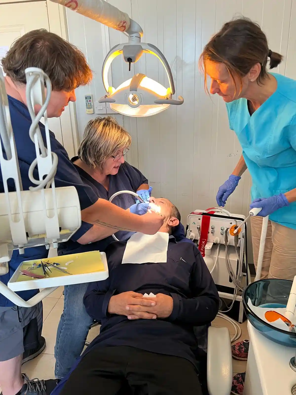 Dieses Jahr konnten wir uns vermehrt und regelmäßig bei der Caritas in Rastatt/Wohnungslosenhilfe einbringen. Auch in Kehl/Kaffeekanne und Offenburg/Pflasterstube konnten wir bei zahlreichen Obdachlosen Gebisse sanieren und zum Teil mit einfachen Prothesen versorgen, aber auch entzündete Zähne oder Zahnwurzeln entfernen und somit Schmerzen lindern. Die Freude in den Gesichtern zu sehen, wenn sie sich zum ersten Mal mit neuem Gebiss erblicken, ist ein unbezahlbares Erlebnis. Hierbei möchten wir die hervorragende Arbeit unseres Zahntechnikers Hr. Wolters in Schutterwald hervorheben, ohne seine Unterstützung wäre dies nicht machbar.