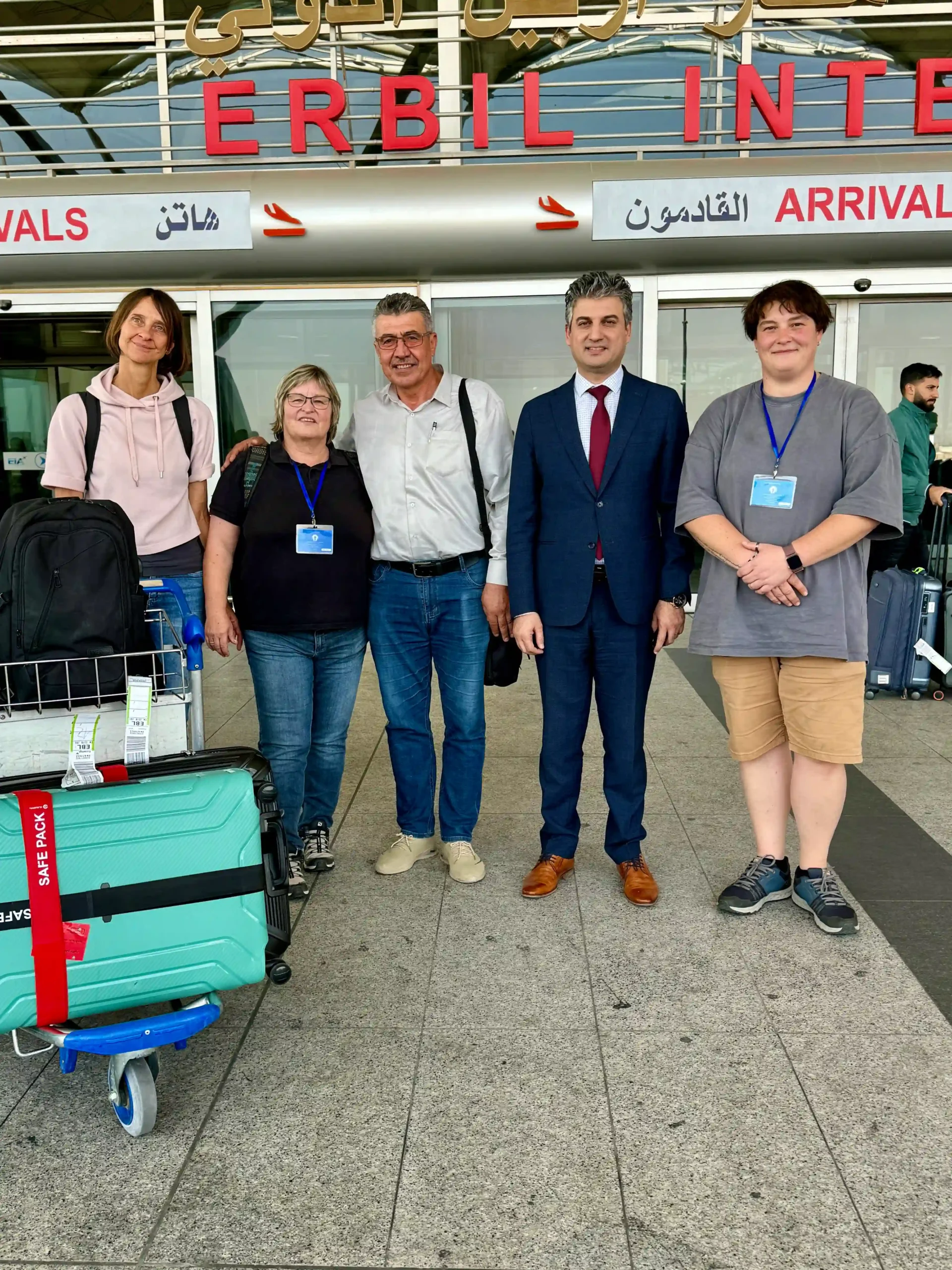 Empfangen wurden wir am Flughafen Erbil von unserem langjährigen Freund und Leiter Naher Osten der IGFM, Kahil al Rasho und dem Attaché des Justizministers. Diesmal natürlich in bester Vorbereitung mit NGO Ausweis durch die VISA- und die nervige Sicherheitskontrolle… Gott sei dank kam unsere Delegation rechtzeitig! Die Dentaleinheit einzupacken war so extrem aufwändig, die wollte ich definitiv vor Ort NICHT auspacken!!! 🤪