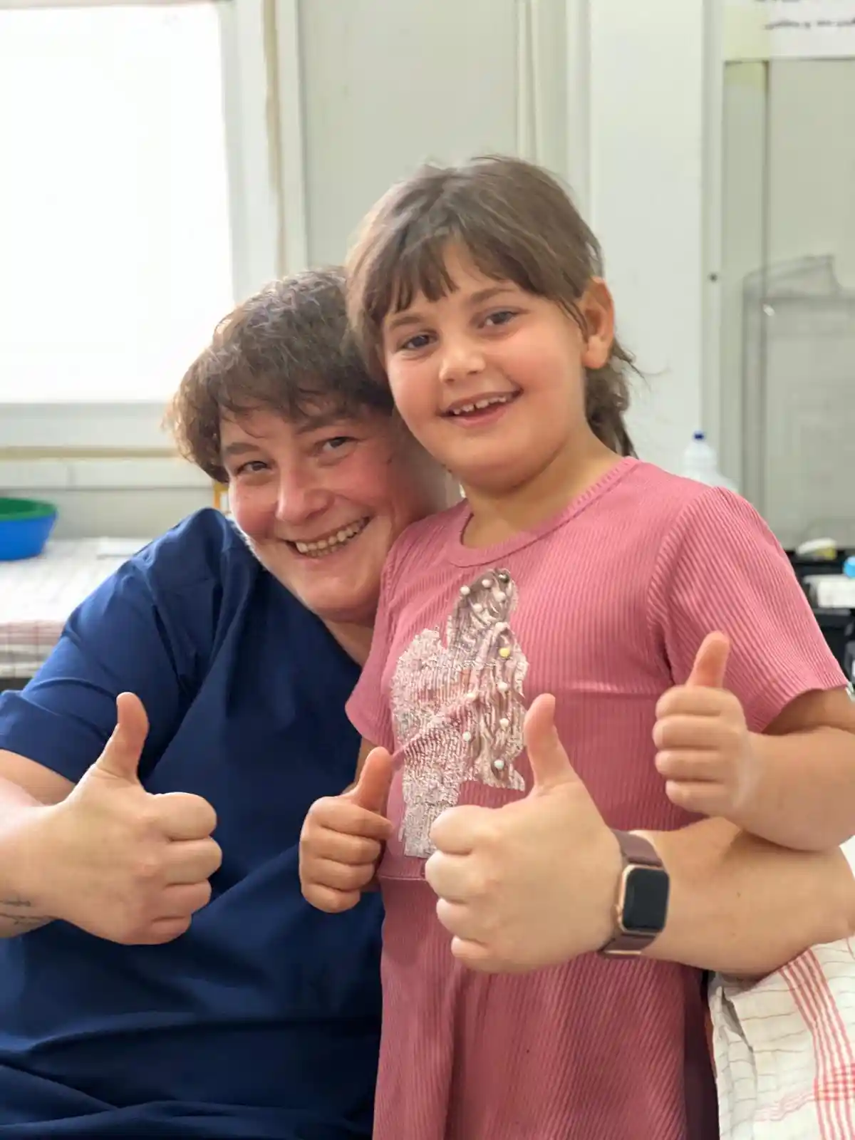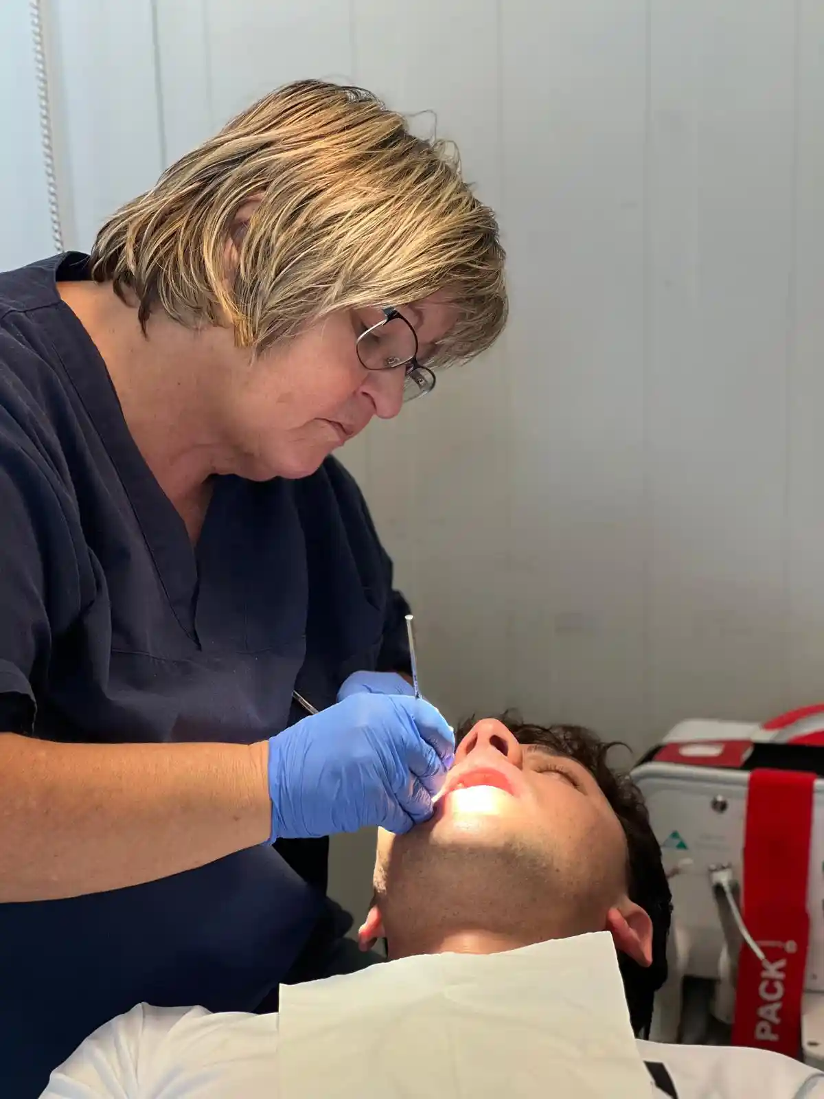 Eines, der für mich schönsten Erlebnisse, war ein 5 -jähriger Junge der uns seine völlig zerstörten Milchzähne zeigte. Uns wurde es schon ganz anders, aber allen war klar das wir hier handeln müssen. Er hatte auch Schmerzen und alles blinzelte Schwarz im Mund. Kirsten hat ihn unendlich geduldig an die Behandlung herangeführt, ihm alles erklärt und mit manuellen Instrumenten die ersten zwei Zähne vorsichtig von Karies befreit. Er war wirklich super tapfer, so dass wir ihn über mehrere Tage jeden Morgen als erstes einbestellt haben. Und er kam wieder… mutig und mit Vertrauen. Schon am zweiten Tag durfte Kirsten die Geräte komplett benutzen – am Ende waren es 8 (Backen-)Zähne.